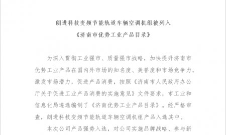 朗进科技变频节能轨道车辆空调机组被列入 《济南市优势工业产品目录》